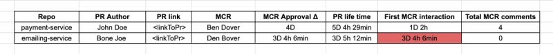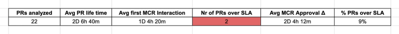 An MCR must interact with a PR within 3 days from PR creation. If more than 7 days pass and MCRs still don’t review a PR, we got a real problem. - Reports must be: